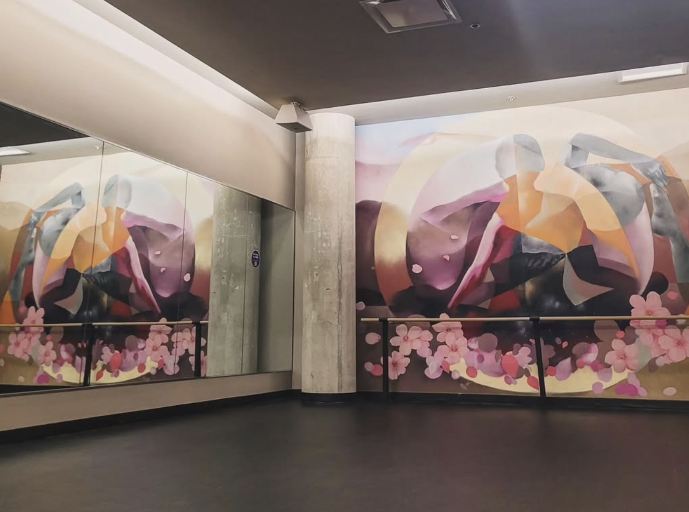 Created for a yoga studio in Navy Yard, Washington DC. Ethereal blend of landscape, figurative forms, and flower petals - capturing the essence of inner peace realized through balance and movement. This piece has served as a contemplative and grounding backdrop for many as they develop and deepen their personal yoga practices.